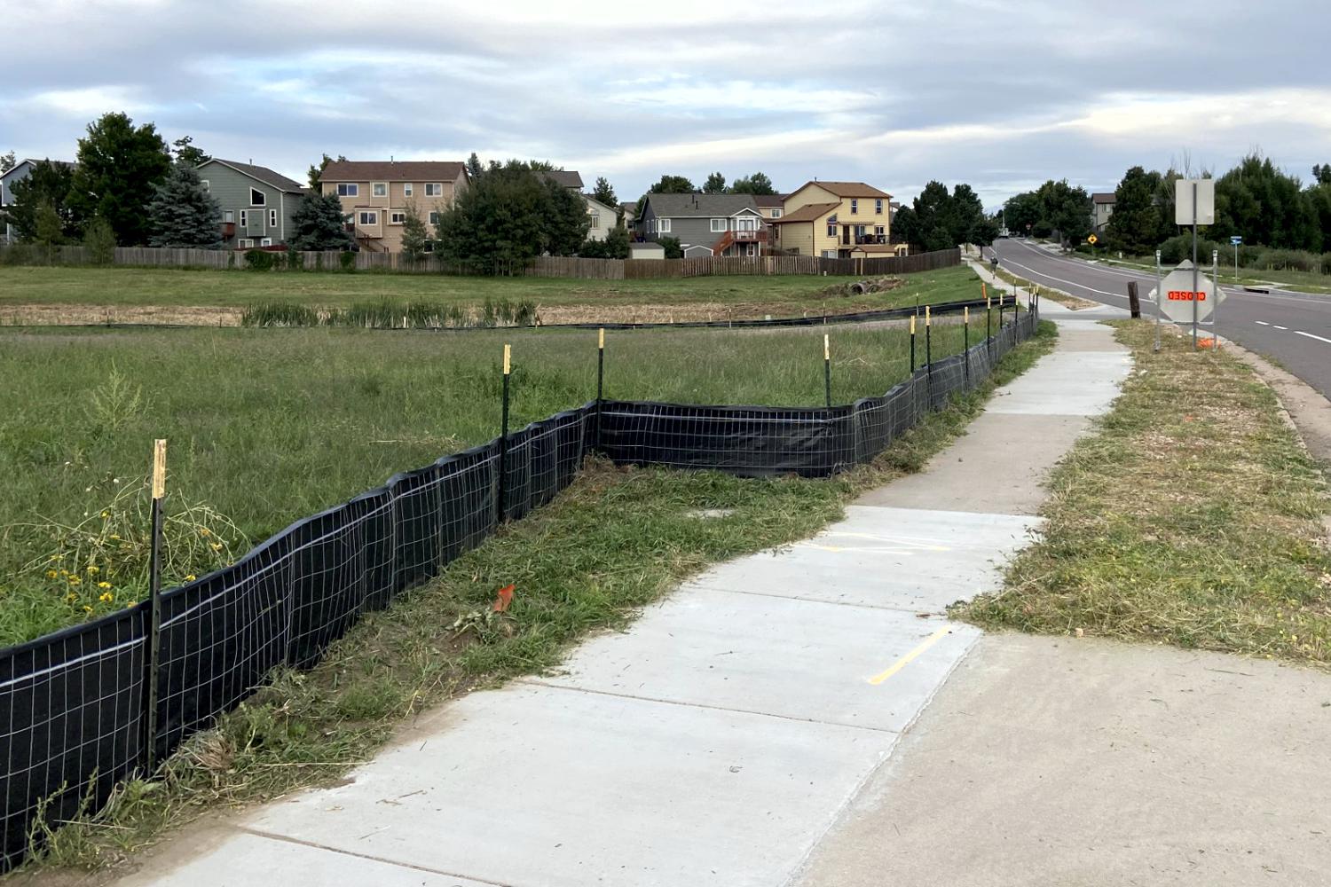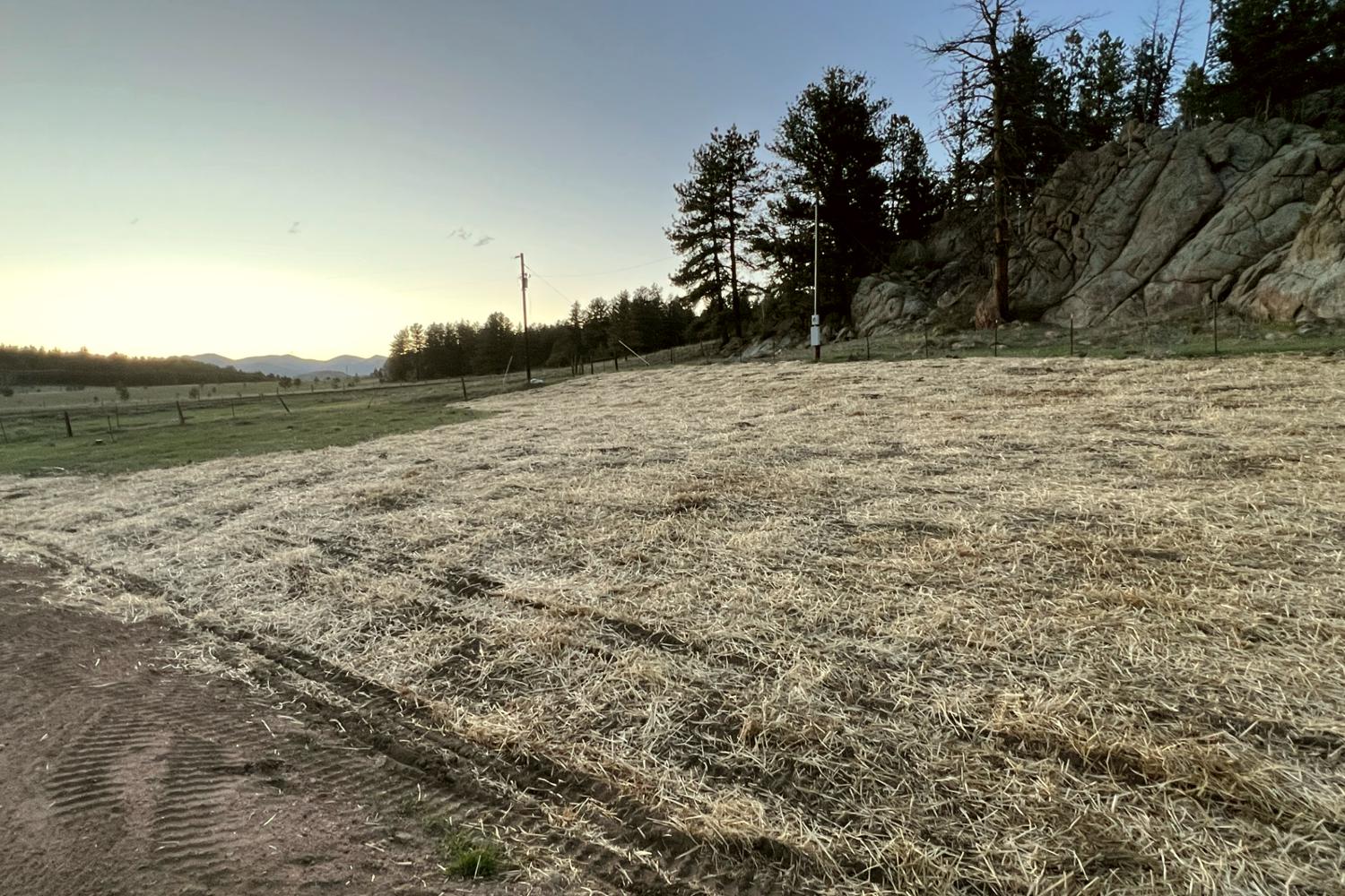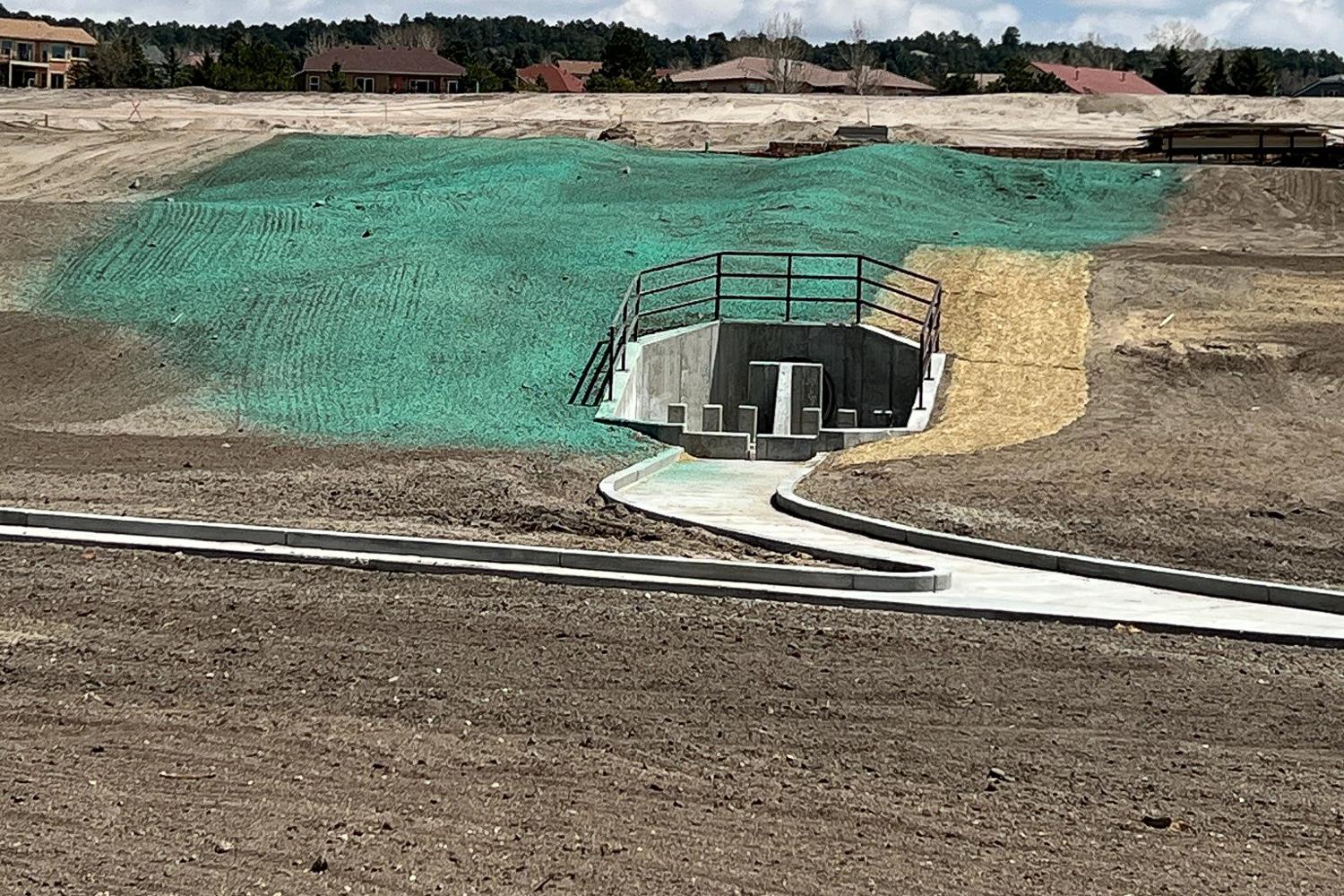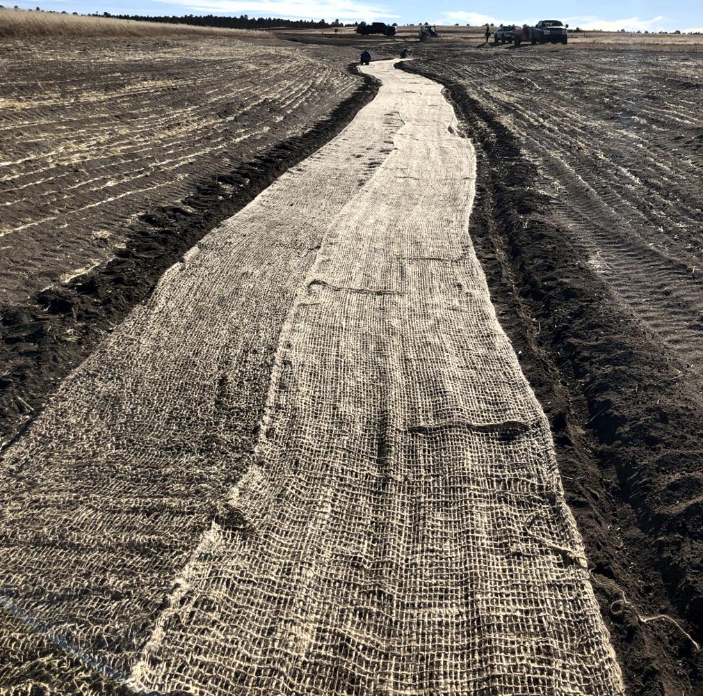 Erosion control in Colorado Springs. Erosion control in Colorado Springs, installed erosion control blankets to keep the seed bedded down, keep the dirt from moving in a rain storm and help the grass seed to germinate. The straw waddles were installed to prevent the dirt from up stream moving down onto the erosion blanket